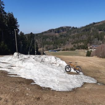 Je to takovy meziobdobi, kdy na horach je jeste snih ale tady uz sucho. Na vyhlidku Luisenhöhe, ktera byla zavrena, hospoda taky, tak jsem se tam motal jak u Suchanku, pac ani augustinera jsem si nevzal. Je to ale hezky pojezdeni po hrebenu, po lesnich stezkach, obcas trochu korenov.