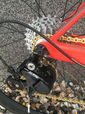 Po téměř dvou letech strávených jen na gravelu se mi zas zachtělo na silnici. Vybíral jsem mezi značkami Wilier, Cervélo a BMC, tyhle tři jsem nikdy nevozil. Výběr byl zúžený jen na ráfkové brzdy a tak nějak mi bylo jedno, jestli lanka uvnitř nebo venku. Nakonec padla volba na BMC, původně jsem měl v merku velikost 54, ale po pár zjištění nakonec padla volba na velikost 51. Chtěl jsem SLR01 nebo SLR02, ale to se mi nepovedlo sehnat, nakonec jsem narazil na bazarové SLR03 v hezkém stavu za dobrý peníz a volba byla jasná. Hned šla na výměnu kola, kazeta, sedlo, brzdy, špalky, pedály, bowdeny, lanka a řetěz. Kolo má pro mě pořád né úplně líbivou váhu. Ale na 7,15kg ho časem dostanu. :) Finální upgrade to ještě není. Kliky jsou těžítka, stejně tak sedlovka, představec, řídítka. Teď budu chvíli laborovat s kompaktem a poté vyměním kliky a sedlovku, následně ještě představec a nakonec aj ty těžké galdy a řídítka. Váha 7,85 kg je s pedály a košíky, jak je kolo na fotkách. Sic je to kolo proti aktuálním trendům, tj na ráfkových brzdách a s venkovním vedením lanek, ale mně se líbí a na mé aktuální ježdění dostačující. Pokud mě rám bude bavit a sednu si s velikostí rámu, tak možná přejdu na Campu, ale až čas ukáže. Prozatím mám z kola radost.