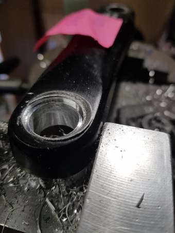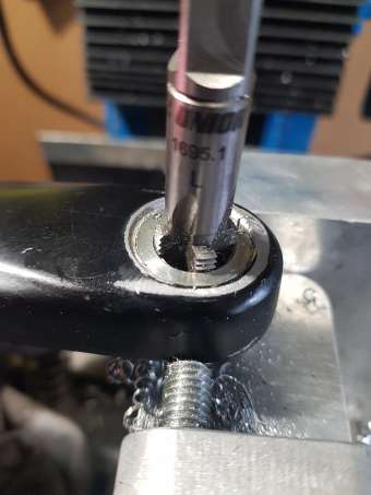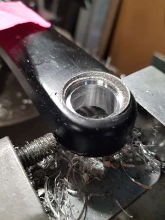 Vubec se mi do toho nechtelo, protoze diky nove praci nic nestiham, ale zase se mi nakupily kliky na zkraceni, tak jsem pri tom zachranil kliku. Dira byla vymleta na prumer pres 16mm, takze nesla dat klasicka vlozka.