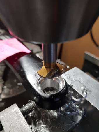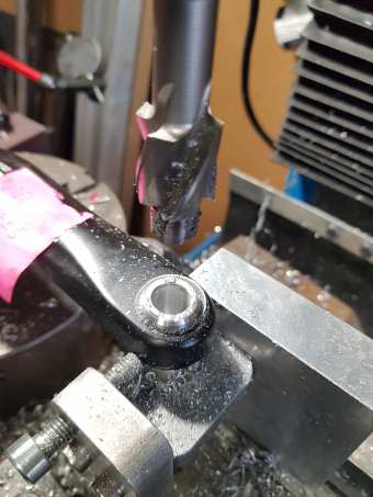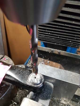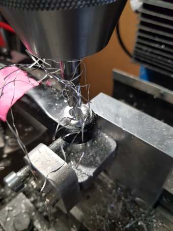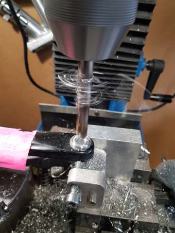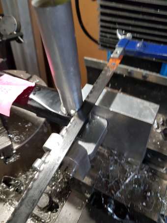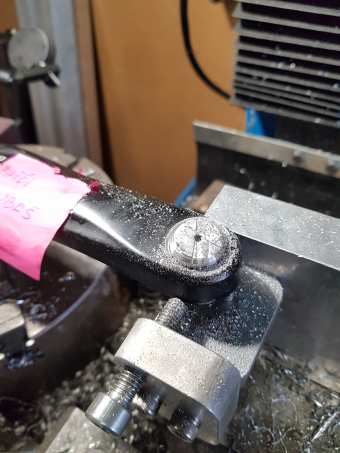 Hnoj – mám na stole vedle svěráku upnutou univerzálku a do té chytnu buď osu, nebo trubku vloženou do levé kliky a ve svěráku mám přípravek, kterým si to zajistím stranově a výškově, aby mi klika neuhýbala dolů při obrábění. Používám to stejně při zkracování klik.