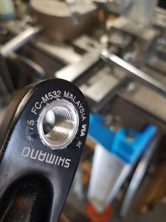 Jak zajistíš, abys měl rovnoběžný závit pedálu s osou středu? Nevidím přesně, jak jsi to upnul, abys toho dosáhnul.