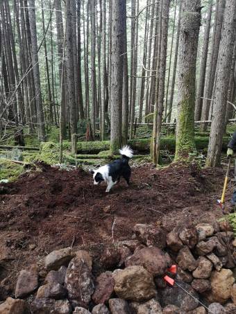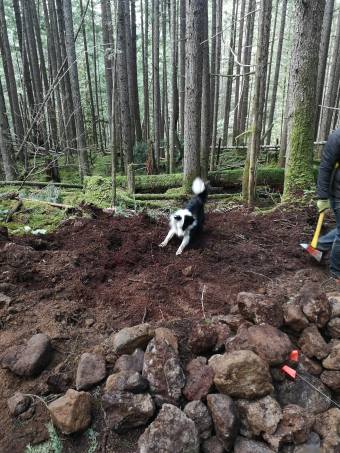 Dneska jsem konecne potkal „vrchniho stavitele“ oficialnich trailu ve Squamish s jeho psem Loamy, kterou jsem znal z prace pri mem kratkem pusobeni ve Specialized. Netusil jsem ale, ze Loamy stavi traily! Kdyz je potreba odhrabat hromady hliny, neboji se toho a zlikviduje ji rychleji nez bagr,nikdy jsem nic takoveho nevidel :D