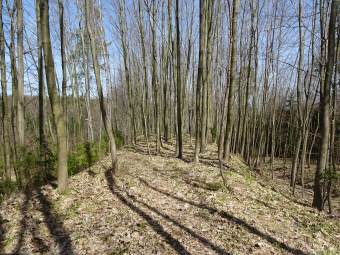 Vrátil jsem se zpět a pokračoval po lesní cestě nad tratí. V tomto místě měl pode mnou stát most přes údolí a napojit se na trať (dnes lesní cestu) uprostřed fotografie