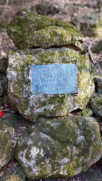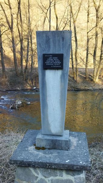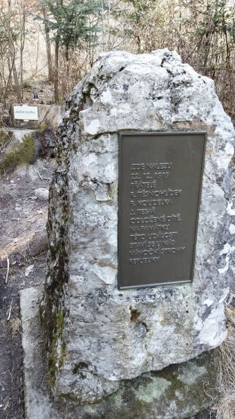7. Pomník Bohuslava Polanského. Text bohužel nečitelný i z blízka.
