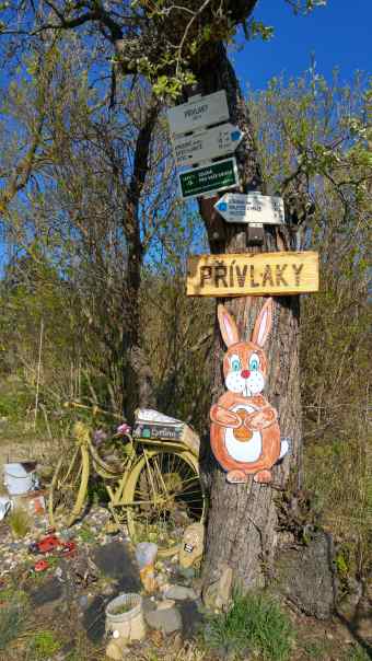 Tématem velikonočních vyjížděk byl sběr rozcestníků do nové OSM hry. Obyvatelé Přívlak a sousední osady Stroupeč jsou zjevně taky hraví, asi soutěží o nejbizarněji vyzdobený rozcestník. Řekl bych, že Přívlaky jasně vedou! Jinak jsem navštívil mj. Žatec, Nechranickou přehradu, Kryry, Valeč, Kružínský vrch a na závěr jsem zabrousil do západní části Džbánské vrchoviny.