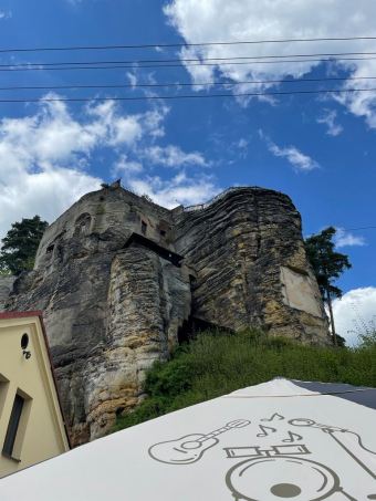 Rychlý průjezd Sloupem s výběhem po schodech na Modlivý Důl. A potom palba z kopce až do České Lípy kde byl v plánu oběd, ale hambáče pouze od pondělí do pátku = oběd odkládáme do Doks.