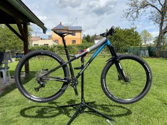 Jelikož jsem si při zbytečně intenzivní chůzi ze schodů rozlámal kotník, potřeboval jsem něco, čím se zabavím při rekonvalescenci… volba padla na revizi cykloparku a odkašlal to nebohej gravel, kterej ikdyž nebyl vůbec špatnej, prostě chytil černýho Petra a musel z domu na úkor něčeho novýho. Zadání znělo hardtail, na kterej se bude dát přidělat dětská sesle a když už máme za barákem ty trutnovský pěšinky, bude umět sjet i něco z nich (což umí i enduro, ale to taky umí kvalitně vyždímat cestou nahoru). A taky to mělo bejt něco, co nestojí opřený u každý sámošky a kulturáku. Po prolezení asi všech anglickejch a andorskejch výrobců ocelovejch kol bylo jasný, že hliník a karbon jsou mimo hru a bude ocel… Pak následovalo dloooooouhý rozhodování, který ukončila náhoda – našel se jeden prima e-shop, kterej vyškráb ocelovej Qayron Spyro v potřebný chlapácký velikosti M. Takže tady ho máte zatím vybalenýho z krabice (s berlema v obou rukách se cokoliv šroubuje, mění nebo šteluje překvapivě blbě, nemluvě o jízdě), vzhledem k osazení už je ale víc než jasný, že se bude řešit kokpit, bude to asi chtít pedály, hodně jsem zvědavej na brzdy (uvidíme, esli to bude brzdit jako endurovský Sainty:D) a páč jsem estét, tak bude potřeba i trochu toho barevnýho ladění… jak to jezdí vám taky neřeknu, nemá to pedály a ikdyby, chybí mi k tomu jedna funkční noha:D takže stay tuned:)