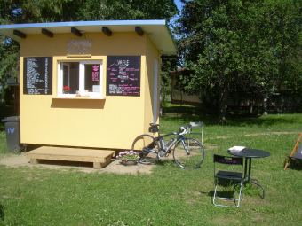Otevřeno je od brzkého rána do 15 hodin, v neděli zavřeno. Kromě kávy tam slečna dělá vafle a za tu chvíli, co jsem tam poseděla, se pro vafle zastavilo několik aut. Protože jsem měla vlastní kafe i cukroví, dala jsem si obložený chleba a stánek zdokumentovala. Nevím, jak dlouho to tam vydrží, ale myslím, že přes prázdniny by to fungovat mohlo.