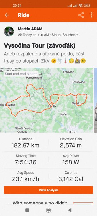 Já mám teplo ráda ale odsaď pocaď. Když si vzpomenu na 43°C při RAAMu tak je mi doteď šoufl:) Ale byla to poušť a nulová vlhkost a to se snaší líp. A vich r tam samozřejmě byl taky. Čím jsem starší tím víc si počasí vybírám. Pátek byl naprosto dokonalej i když začlo foukat brzo ráno a tak první půlka na Klínovec byla citelně proti. Máme podobný tempo:)