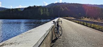 Cílem a točným bodem je tedy dnes vodní nádrž Nýrsko, kde se ten monstrózní trychtýř nachází. Takže krásná příležitost, jak si střihnout skoro celou délku Šumavy, nejprve severnější podhorskou trasou a zpět potom její centrální částí. Nutno podotknout, že v nižších částech je to daleko náročnější co do kopců, dnešním bezkonkurenčním vítězem je lahůdkové stoupání od králováckého dvorce jménem Busil (divné jméno, asi že Busil – tam jsem hodně zkusil :-)). Pak tedy taky stojí za hřích výjezd z Vimperka ke Sloupu. A z ŽelRudy na Špičácké Sedlo. Ze Zelené Lhoty na Hojsovku. Z Modravy na Filipovu Huť. Jo, a třešnička na dortu, skoro doma, děsný krpál ze Šumavských Hoštic do Škareza.