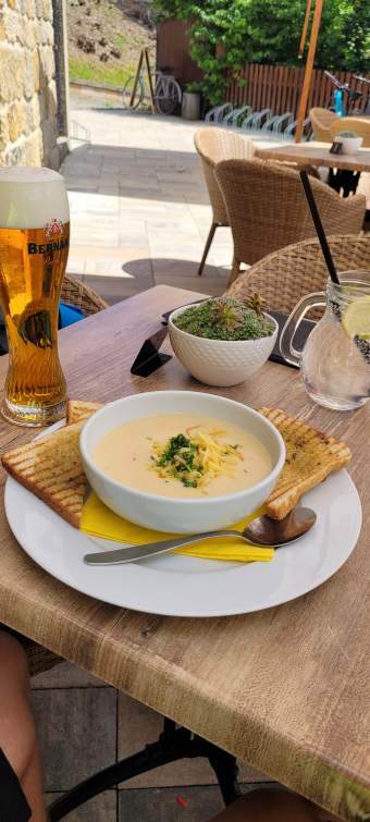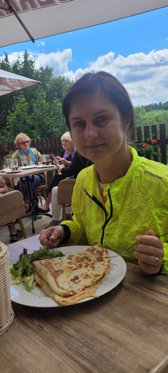 Po tom, co jsem si dal Kuks 3× za tyden, tak zena, ze si ho da taky. Byl jsem v patek darovat krev, takze den volna a jedeme. Byl to jeji prvni takto dlouhy trip, zatim max 70km po lesich. Pocasi nic moc, spise zatazeno a nic moc teplo a navic vitr. A samozrejme jak naschval bud bocni a nebo proti a samozrejme tam i zpatky. Ale dala to. Odmenou byl obed na Kuksu. A ve finale krasnej den.
