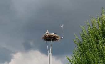V Žireči zastávka v cukrárně na posílení. Čápi s mladejma v hnízdě radostně klapali zobáky.