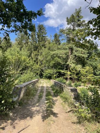 Most přes železnici, mezi Starým Pelhřimovem a Myslotínem