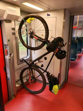 Ty držáky kol ve vlaku jsou pěkně na nic, pokud to jde kolo si držím sám.