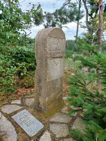 Francouzský kámen.Kámen s vytesaným nápisem, v němž hraběnka Eliška ve francouzštině vzpomíná na lásku svého zesnulého manžela. Nápis byl vyryt roku 1810.