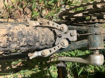 U zákazníka ,,kolektora,, som pri múre zbadal antikvariat. Zaujala ma zadná brzda a kłuky s biopace po ktorych som dakedy dávno pokukoval. Brzda vyzerá jak dajaka lacná kopia delty od kampy. Tu vydno jak ide pokrok dopredu. Povedal že to má v pláne dat doporiadku.