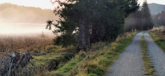 Od Lipenské hráze přes Kyselov na skok do Rakouska a přes Guglwald a Pasečnou zase zpět. Svatý Bartoloměj ve Frymburku za ranní kosy, 1°C to tam ukazovalo. Barevná krajinka je z Rakouska, čb od Pasečné a pak něco z bývalé obce Německý Rychnov (Rychnůvek) u hranic. Stával tam gotický kostel, který v roce 59 zbourali, celé návrší je tam z těch trosek. Dnes na něm stojí improvizovaný oltář a velký železný kříž. Té lesní pěšiny se tedy šíra neúčastnil, takovej borec nejsem :-D
