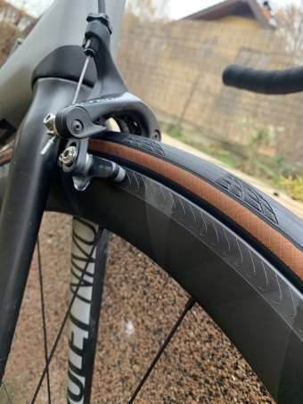 V den pořízení, obuto na GP5000 TdF edice. Komínek na řídítkách zůstal asi 7 tisíc, než jsem ho seřízl.