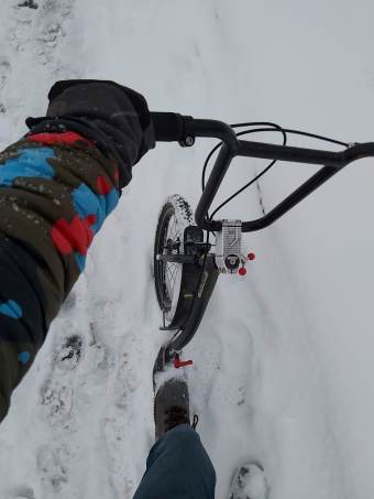 Adu – je to prašan takže dobře, protože je člověk pořád na pevném základě a naštěstí se sníh nijak nelepil takže to šlo :) Navíc jsem přezul na pláště s hrubším vzorkem ;)