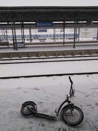 V pátek byla cesta do práce poněkud trnitá a jeden malý trn způsobil defekt, ale dnes již krásně zasněžená.