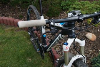 Jízdní dojmy? Z kopce dolů se mi to líbí, do kopce taky. Akorát by to mohlo být tak o 1kg lehčí. Bendera se vzdávat nechcu a tachec si nový kupovat nebudu. Přední a zadní kolo jsem si opravdu nespletl, takové maličkosti neřeším.