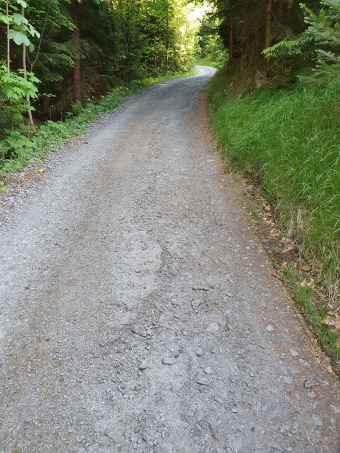 Cesta kolem Hobitína, radši jsem těch 500 metrů silničku tlačil a dal si traťovku. Pak už se dalo v klidu jet.