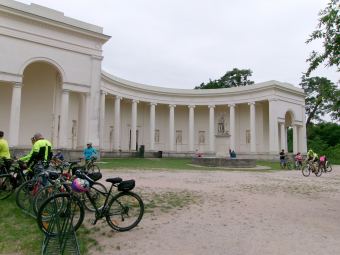 Chtěla jsem se taky zastavit u Tří Grácií, ty máme jenom tady na Moravě ;-) Z Valtic jsem to k nim vzala po červené turistické značce (na mapce mezi body 21–22) kolem dvou pěkných staveb v Lednicko-Valtickém parku. Tato cesta je bílá šotka a plánovač ji pro silniční kolo nepovolí, ale i po ní se v pohodě dalo s mým kolem projet.