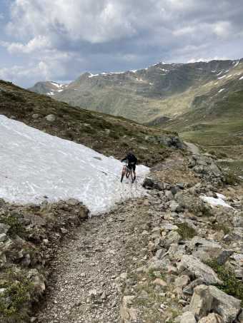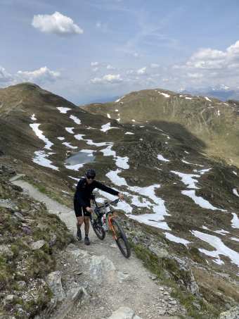 S kamarádem jak on si rád říká Důchodce na Oizovi jsme delší dobu plánovali výlet do Dolomit. Hlavním důvodem byl akce nazvaná Stoneman, která nás oslovila na první dobrou. Rozhodli jsme se trasu absolvovat na jeden zátah. Přípravy byly velké jak při výšlapu na Everest :) V sobotu jsme vyrazili autem v 6h ráno směr Sexten. Dorazili jsme poměrně brzy, něco před 15h. Stauder měl otevřeno až po 16 a jeho stanoviště bylo i jinde než mapy ukazují. Tak jsme odpočívali a čekali abychom si mohli vyzvednou startovní balíček. Ten stál myslím 25e. Kromě kartičky, která je nutná k označení na každém z pěti bodů balíček obsahuje zvětšenou mapu, 0.5 bidon, šátek a náramek, prostě kraviny:) Druhý den ráno jsme si přivstali v 4h a udělali nějakou pevnou stravu na cestu, jinak jsme si vezli kupu tyčinek, gely, ionťáky atd. Vyrazili jsme lehce po 6 hodině, bylo kolem 7 stupňů a čekalo nás 18km stoupání na Strickberg do cca 2550m. Na jednom rozcestí jsme si zajeli a museli jsme se kousek vrátit, to bylo první a poslední větší kufrování, pak už cesta ubíhala poměrně bez logistických problémů. Takticky jsem z plánu vynechal tlačbu ze Sillianu na Sillian Hutte, nechtěl jsem si úplně dorasovat karbonové tretry, bohužel jiné nemám, ono toho tlačení kola bylo i tak poměrně dost. Tudíž jsme využili mezipřistání ve vesnici, proběhla výměna oblečení do krátkého, doplnění ionťáků, cola, krátká sváča a už se zase šlapalo. Stoupali jsme tudíž ze Sextenu k Sillian Hutte. Od Sillian Hutte přišel úsek nazvaný Demut Passage, měl by to být „Highlight“ celého Stonemana. Na tento úsek se kamarád těšil z celého výjezdu nejvíce, já se naopak nejvíce obával, viděl jsem videa na YT a trošku mě jímala hrůza z těch otevřených míst. Realita ale nebyla tak hrozná a vše dobře dopadlo, každopádně tato pasáž, velká část té hřebenovky byla poměrně úmorná, nebylo to moc jezdivé. Byly tam ještě i zbytky sněhu, takže chvílema bylo mokro v tretrách. I tady se teda kolo tlačilo a byly tam myslím dva nebo tři úseky kde se muselo kolo vyloženě nést do dost prudkého kamenitého svahu. Po této pasáži už to zase svištělo. Těsně před posledním vrcholem kde jsme si měli orazit (Rotwand) byl jeden úsek, který byl neprůchozí, cesta zatlučena dřevem, tak kola přes ohradu a šup po louce. Stihli jsme si ten samý den vyzvednou i památeční trofej, oba jsme zvolili podstavec i šutr, cena byla myslím 40e. Akce náročná a velmi povedená, dopoledne jsme měli hezké počasí a naskytly se nám krásné výhledy, já tedy moc nefotil. Nakonec nám to hodilo skoro 124km a nějakých 4100 výškových. Rozhodli jsme si pobyt prodloužit. Druhý den byl relax a procházka okolo Lago di Braies. Další den byla na programu horská etapa na Tre Cime, krásný a nepříjemný brdek, bohužel nás to nepustilo až k Cimam, zákaz vjezdu s kolem. Pod kopcem byly ještě poslední zbytky výzdoby z Gira. Poslední den jsme si udělali ještě další horskou etapu na Stammerhutte, Messnerhutte a Oberbergalm. Kopce tam byly opravdu výživné, dlouhé a ještě k tomu s přísným sklonem, bylo tam plno pěkných střech. Víceméně kamkoliv se člověk rozjel tak to bolelo. Bikerů na normálních kolech bychom spočítali na prstech jedné ruky. S kamarádem jezdíme 34t převodníky a před odjezdem proběhla výměna za 32t. Celkem mě to za ty 3 vyjížďky hodilo 246km a 7900 výškových. Příroda byla opravdu nádherná jak v nějakém dokumentu z National Geographic :)