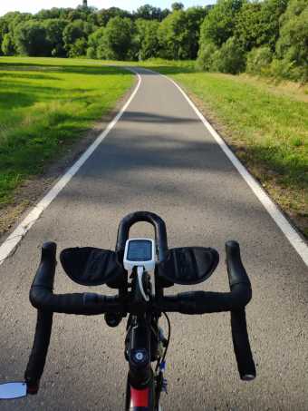 Až do Hřenska jedu proti větru, ale díky hrazdě se to dá. Pak se vítr otáčí a do Litoměřic mi pomáhá. Po krizi si užívám tři hodiny zase při síle. Jenže teplota roste a vedro mne začíná zmáhat. Zastavuji na chvilku ve stínu, kde je mi taky horko. Fuj. Před Mělníkem si dávám domácí koláč a Colu. Pomohly. Ale horko nepolevuje a nohy v tretrách pálí jako oheň. Trpím. Kadence šlapání zpomaluje a já opět děkuju za nápad nasadit hrazdu. Bez ní by mi odešly dlaně i přes dvojitou gelovou omotávku. Hrazdu mám poměrně vysoko (oproti časovkářské koze), ale i tak se dá jet rychleji a pozice na sedle se zalehnutím změní, což je příjemné. Sedlo Fízik Argo Adaptive odvádí skvělou práci. Není problém na něm zalehnout na hrazdu, což mu přidává body oproti dražšímu sedlu Specialized, které mám na cyklokrosce. To nemá tak kamarádskou špičku pro aero pozici. Vítr mi zase fouká proti.