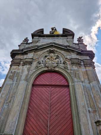 Klášter Hora Matky Boží, Hedeč a konec aleje, která údajně čítá 357 stromů - javor klen, jasan, jeřáb, lípa.