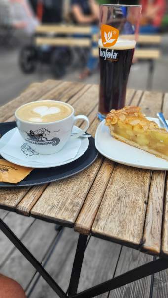 Na kafe ke kobylce v Poliance se stavujeme skoro každý den, když jsme v Tatrách. Kafe je tam fakt dobrý a přidávají do něj příměs nějakých bylin, které mají odbourávat únavu a stres.