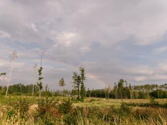 Každopádně sobotní ráno a cesta na Vysočinu mi chybějící hvězdy bohatě nahradily, východ slunce a ranní přízemní mlhy se nikdy neokoukají. Na zpáteční cestě jsem si vyjela na vyhlídku Metodka, odkud bylo vidět až na Jeseníky (Králický sněžník by to měl být) a zastavila jsem se u Památníku vlka, celkem 149km (74 + 75) i s cestou k noclehu, která není v mapce, pro silniční kolo to v cílové oblasti není ;-) Na vyhlídku Metodka a k Vlčímu kameni jsem jela/vedla po žluté turistické značce z Odrance.