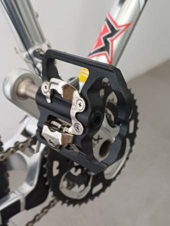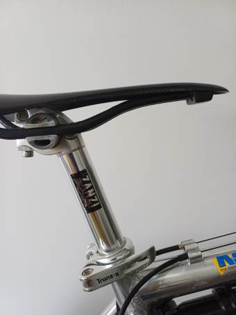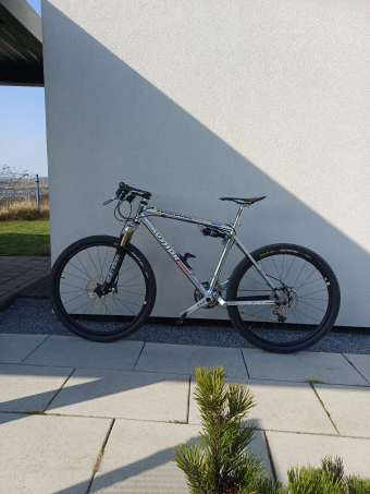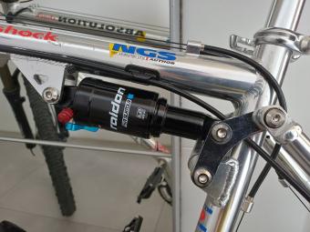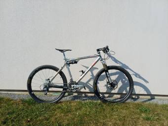 Koncept starého rámu a moderních komponentů mě neuráží a na první fotce je mi „tvarově“ ten bike hodně líbí, ale chtělo by to dostavět, oloupat polepy z kol, odnápisovat řidítka a dát jiný představec. Takhle je to takový nedostavěný cirkus…
