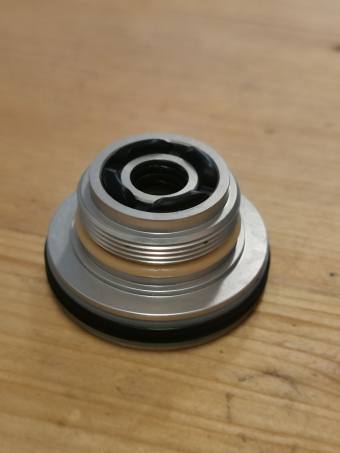 Údajně by to melo řešit problémy se zavzdušňováním tlumiče (čvachtání). FOX opustil klasicky polyuretanový O-kroužek, který nahradil dvojicí klasických NBR70 o-kroužků menšího rozměru.