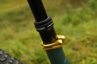Myslím, že rám je až na úplný drobnosti naprosto parádní. Luxusní vnitřní vedení, v reálu krásnej lak, docela překvapivý pohodlí od zadní stavby, rozumná geometrie a nezavazející horní trubka. Jedinou konstrukční chybku vidím ve vysoko umístěných dírách pro košík na láhev (částečně vyřešeno adaptérem Topeak) a kdyby sedlová trubka pro moji výšku umožnila ještě větší rozsah teleskopu, nezlobil bych se.