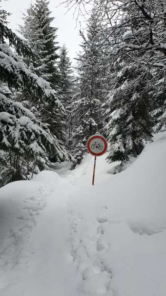 Z Míseček jsem sjel do Špindlu a vystoupal k boudě U Bílého Labe , kde jsem vyměnil krátké pásy za dlouhé.