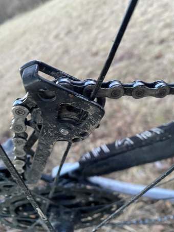Na 130. km nabírám klacek a namotávám hazku o výpletu. Ohnuté ramínko. Násilném narovnání nepomohlo, ale nakonec se nechala přemluvit.