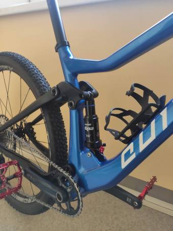 Kolo je skládané na zakázku. Chtěl jsem kolo pro jakýkoliv terén, takže volba padla na XC FULL a kvůli váze kola jsem volil karbon. Na zakázku je i odstín barvy rámu.