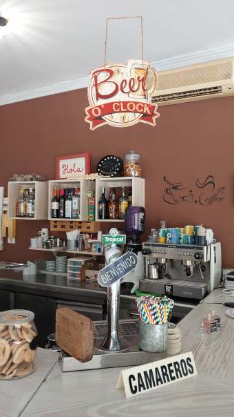 Doplňování energie na základně. Pivko je z místního minipivovaru Viva.