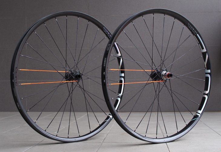 Zde neprůstřelná verze na 350 g ráfcích DUKE Lucky Jack HD SLS4 s vnitřní šířkou ráfku 30 mm, Erase Hook Flange náby navržené speciálně pro Berd paprsky a váha ukázala krásných 1.220 g. Šlo to udělat samozřejmě papírovější, ale vzhledem k tomu, že co dostanu pod ruky, to většinou zničím, chtěl jsem, aby to bylo „nezničitelné“. Standardně bych to samozřejmě napletl na DT 350tky, nicméně práce s Erase je nesrovnatelná skrze speciální háčky. Náby mají titanový ořech, 60ti záběrový systém, 2. nejkrásnější zvuk hned po Industry Nine a navíc na ně poskytuje výrobce doživotní záruku. Dva oranžové dráty jsou kvůli oranžové Foxce, aby to ladilo a „dávalo“ smysl.