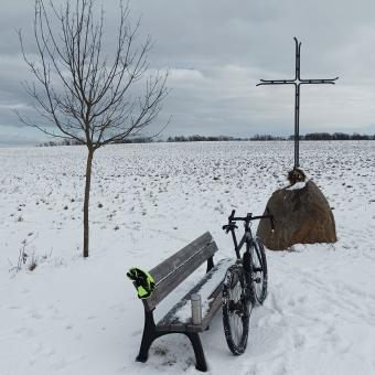 Do lesa se tady bez hřebíků nedá, ale silnice je krásně čistá a o víkendu moc aut nejezdí, dalo se v poklidu projet podél Bobravy od Radostic až k lomu v Mariánském údolí. Na zpáteční cestě z Radostic dokonce vysvitlo sluníčko. Do kopce ani na led se mi nechtělo, držela jsem se na silnici.