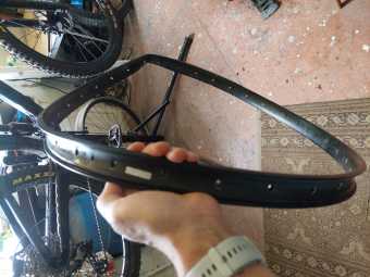 Ráfek předního kola nepřežil můj nekonvenční přístup k dropování. Tak jsem nuceně upgradoval na DT Swiss E1900.