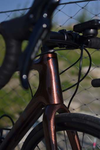 Za mě vedení venkem také plus. Kolo pěkný, rám je špica, 105tka je vděčná sada a časem to hodně povýšíš karbonovými záplety. Zámek sedlovky je fakt zvláštní, doporučuji kontrolovat a dotahovat, on si trochu sedne.