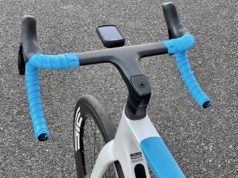 Custom paint by SingleBe, kotouče SHIMANO RT-CL800 160/140 mm, omotávka Lizard Skins DSP 2,5mm V2 Cobalt Blue, Chain catcher Kocevlo, košíky Elite Custom Race Plus Black Matt + šrouby A2Z elox, držák Garminu ULLICYC. Váha je s košíky, pedály a držákem Garminu.
