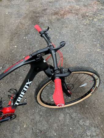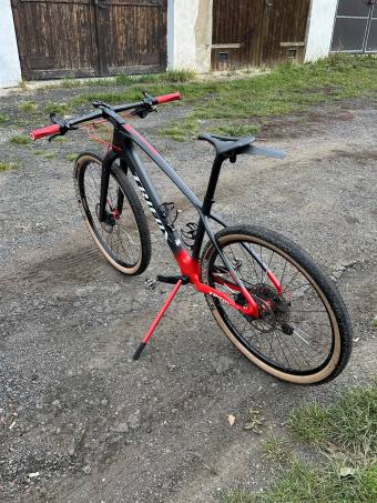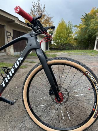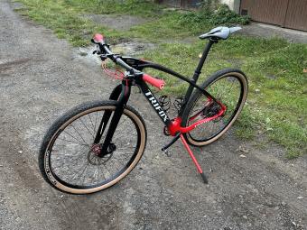Tak to konečně došlo a sestavil jsem to. Tedy je to „gravel“ s rovnými řidítky, vnitřními rohy a 29×2,1" plášti. Váha se nakonec bez pedálů dostala pod lehce pod 9,3 kg.