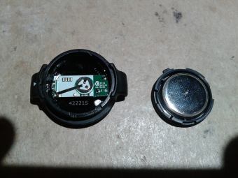 Rozebrané čidlo, ta modrobílá věc je anténa, velký čip je kontrolér nRF52832 a ten malý čtvereček je akcelerometr,velmi pravděpodobně tříosý, jehož typ se mě nepodařilo přesně určit.. Pěkné a technicky parádní řešení, jen ten sw psal nějaký pitomec. Chová se to jak kontakt se závažíčkem...