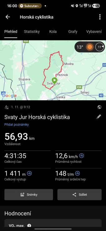Znáte takový to nutkání…probudím se a v hlavě: Svätý Jur…proč? Nevím, asi jsem moc poslouchal Čad. Takže sednout k mapám, plus mínus naplánovat trasu a sobota vypadá pěkně. V sobotu počasí za jedna, lokalita v topu, šustící listí pod koly, kde člověka z kochání se probere schovanej kořen/klacek/šutr a připomene vám, že se máte věnovat řidítkům :-) Jinak trasy parádně značený, C stezky místy vedený nádherně ve vrstevnici formou singlu. Spousta intenzivních výjezdů, rozhodně jsem tu nebyl naposled.