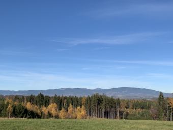Výhled na Krkonoše z Červeného vrchu u Pecky