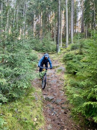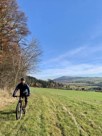 Včera to vypadalo na krásný podzimní slunečný den, tak jsme vyrazili s Maajkeem vlakem do Ostroměře. A pak už na kolech na místa známá i neznámá. Omrkli jsme total crazy Dog Town u Lázní Bělohrad. Obří skoky a dirty (tak třeba někdy v příštím životě ) Pokračovali jsme na Pecku do oblíbené cukrárny na chlebíček a Jungberga. Následoval výjezd na Červený vrch, kde jsme se pokochali výhledy na Zvičinu a na Krkonoše. Pokračovali jsme směr Mostek , Debrné a pod Martinskou stěnou až k Lesu Království. Rychle vyfotit přehradu a nejkratší cestou do Dvora Králové. Začlo zapadat slunce a chtěli jsme to aspoň za světla stihnout do Velichovek. Což se skoro povedlo. Zastávka U Vočka na klobinu a plzeň. Závěrečné dupání za tmy s bludičkama jsme si prodloužili chybnou odbočkou na Smiřice. Ve finále 93 km a 1350 m nastoupáno. Počasí v topu!