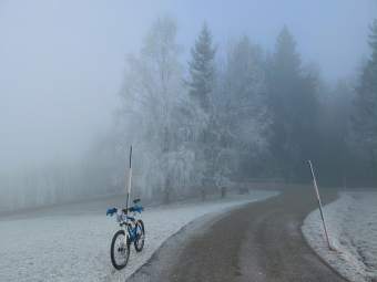 Ostruvek slunce pouze poslednich 20 vm. Dnes jsem mel i full zimni oblek na sjezd, ale ta kosa ve sjezdu v te mlze chce vylepseni.